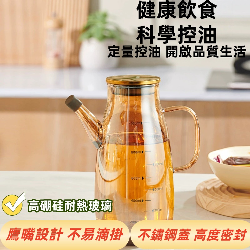 【新品】大容量密封玻璃油壺,精準控油,不易掛油,健康每一餐